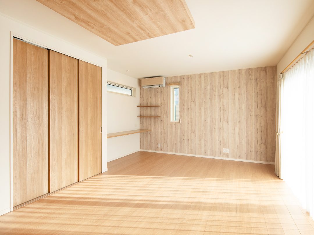 内部はナチュラルな色合いとし、アクセントには木目を選択しました!